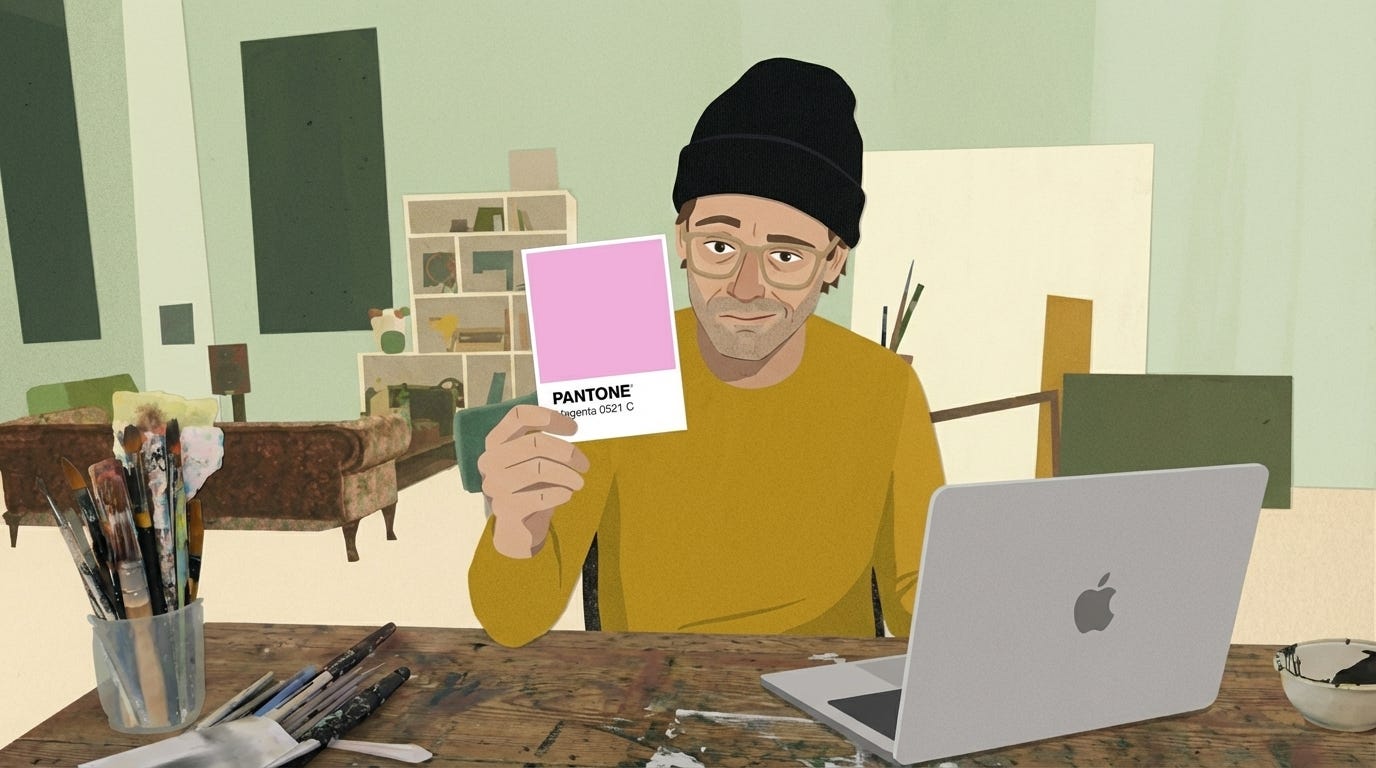 Obviously, it’s not the first time someone on Reddit has the story a bit twisted, not least because this bottle of ‘Stash’ acrylic that I made with my friends at Liquitex for other artists to use is very, very magenta and very, very real.